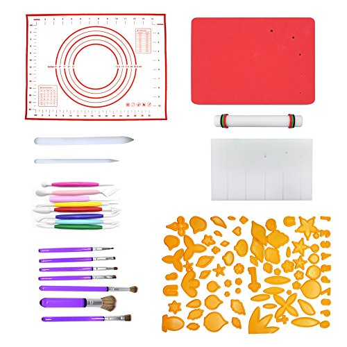 AK ART KITCHENWARE Sugar Paste Flower Fondant Cutters Modeling Tools Dough Mat with Measure Cake Brushes Fondant Foam Pad Rolling Pin, hopefully can help you in buying the product.
