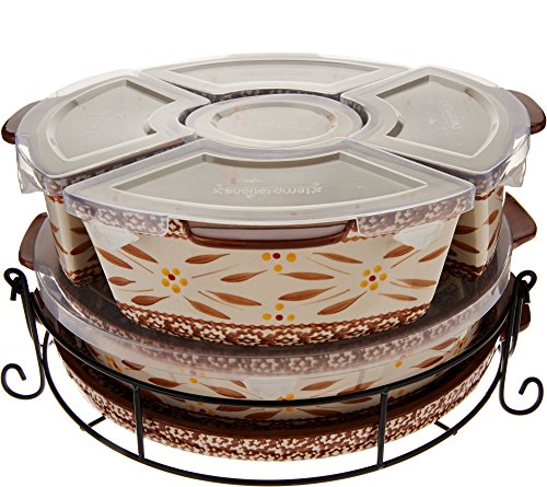 Temp-tations 3 qt. Round Baker, Lid-it & 5 Customizable Mini Bakers (Old World Brown) through an online shopping site.